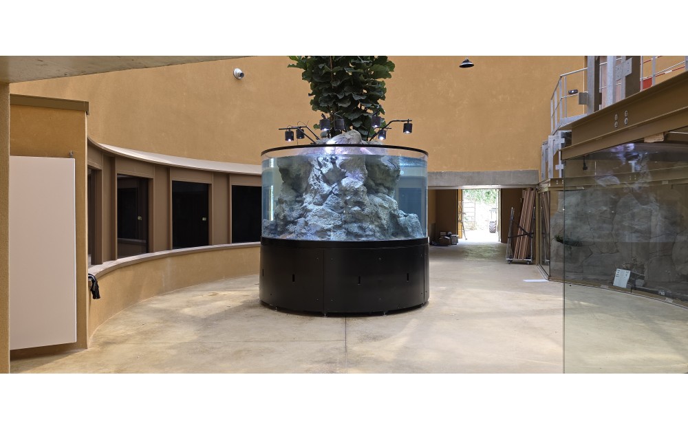 Based on an original idea by @vincentspeller, architect, we designed and built this 11,000-liter aquarium. It is a 11,000-liter PMMA tank with a central compartment intended for growing a Ficus. The technical compartment, located beneath the aquarium, houses the pumping system, air conditioning, and bio-mechanical filtration.